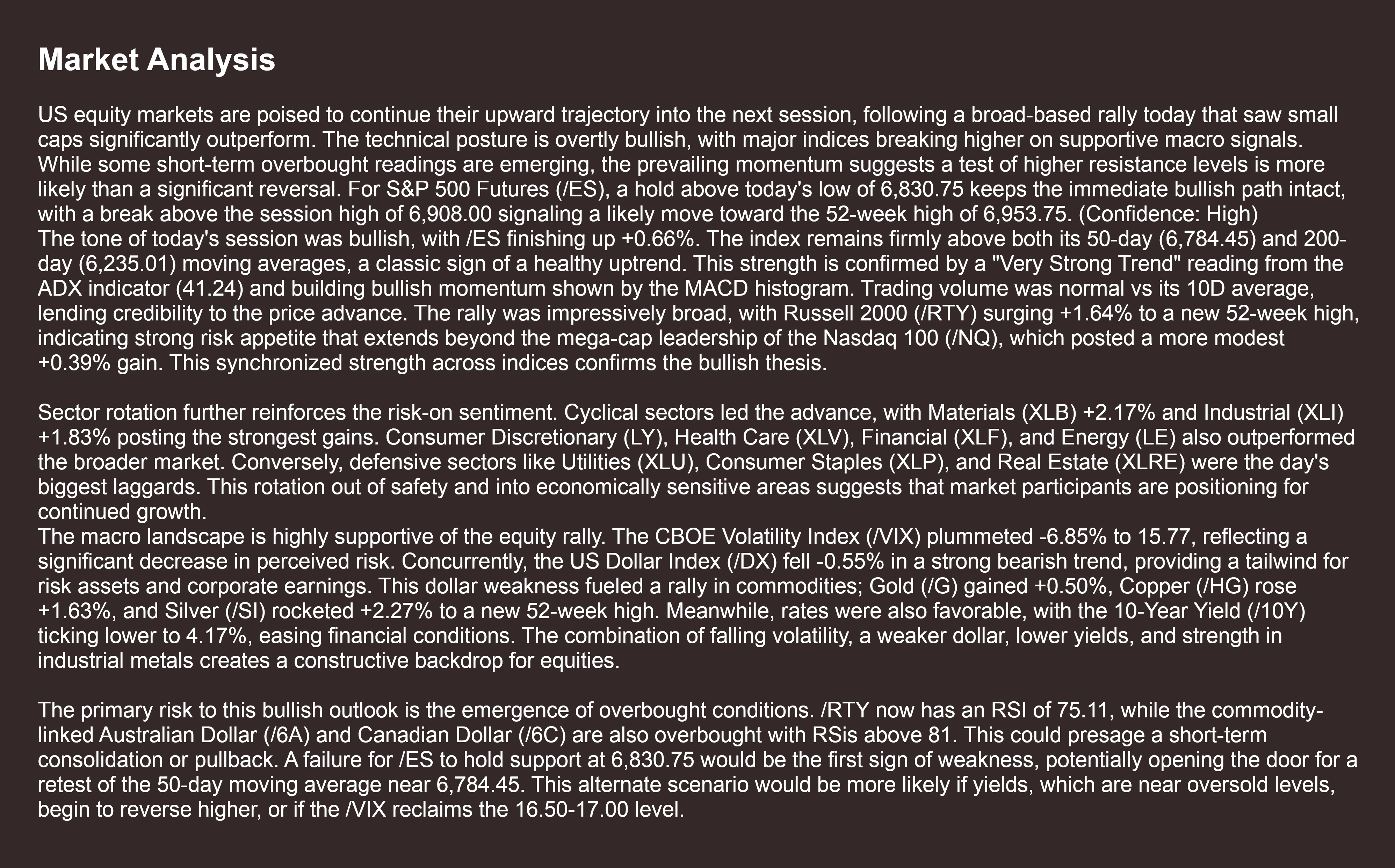 A focused technical and price-action note for individual names in your watchlist. Movement Analysis turns raw price, volume, and volatility into concise trading commentary so you can quickly decide which symbols deserve time and capital.